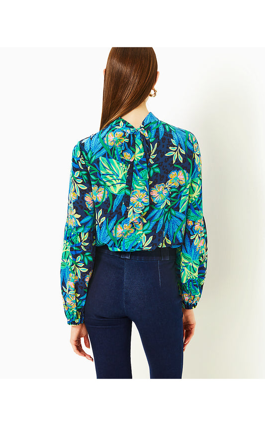 RAYALYNNE SILK TOP, VILLA GREEN SILK BUBBLY CLIP