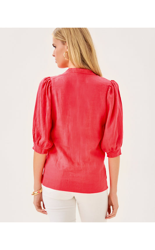 MIALEIGH ELBOW SLEEVE LINEN TOP, CANE CORAL