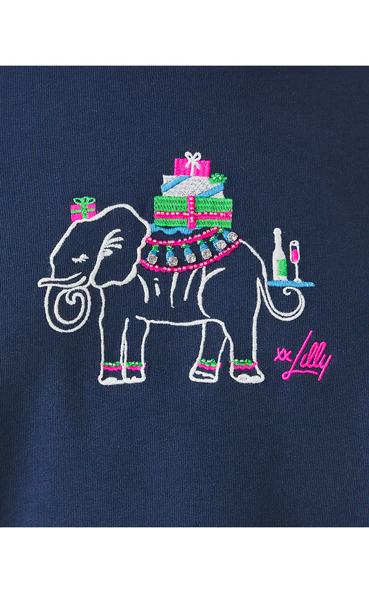 BALLAD LONG SLEEVE SWEATSHIRT, LOW TIDE NAVY HOLIDAY ELEPHANT EMBROIDERY