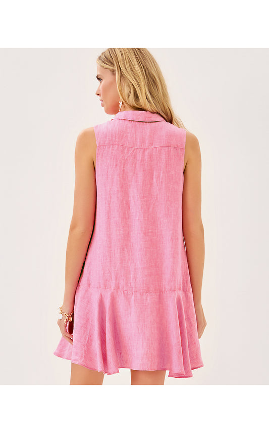 ELLOWYN LINEN DRESS, SUNKISSED PINK X RESORT WHITE