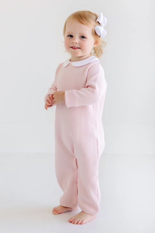 Poppy Dell Playsuit, Quilted, Palm Beach Pink with Worth Avenue White