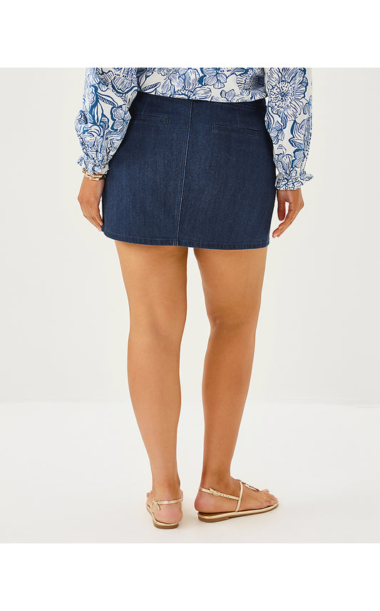 COLETTE STRETCH DENIM SKIRT, DARK WASH