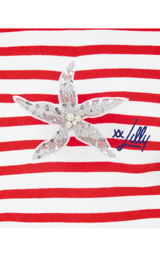 BALLAD LONG SLEEVE SWEATSHIRT, ROCOCO RED COASTAL STRIPE STARFISH EMBELLISHMENT