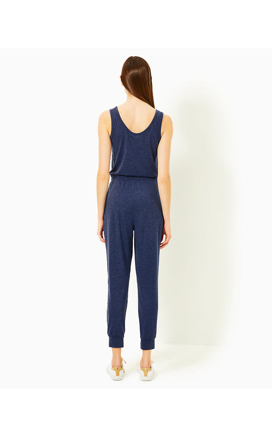 MAISIE UPF 50+ JUMPSUIT, HEATHERED MED BLUE X NOIR