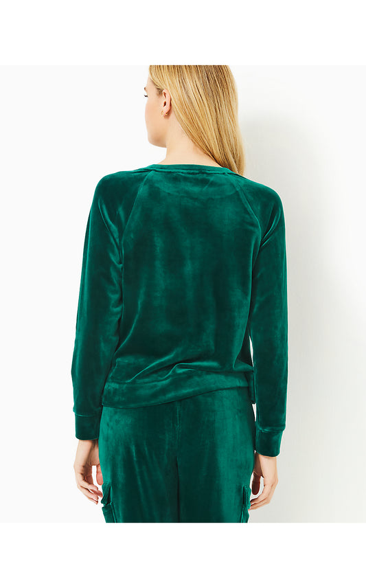 BALLAD LONG SLEEVE SWEATSHIRT, FIDDLE LEAF GREEN BOW EMBELLISHMENT