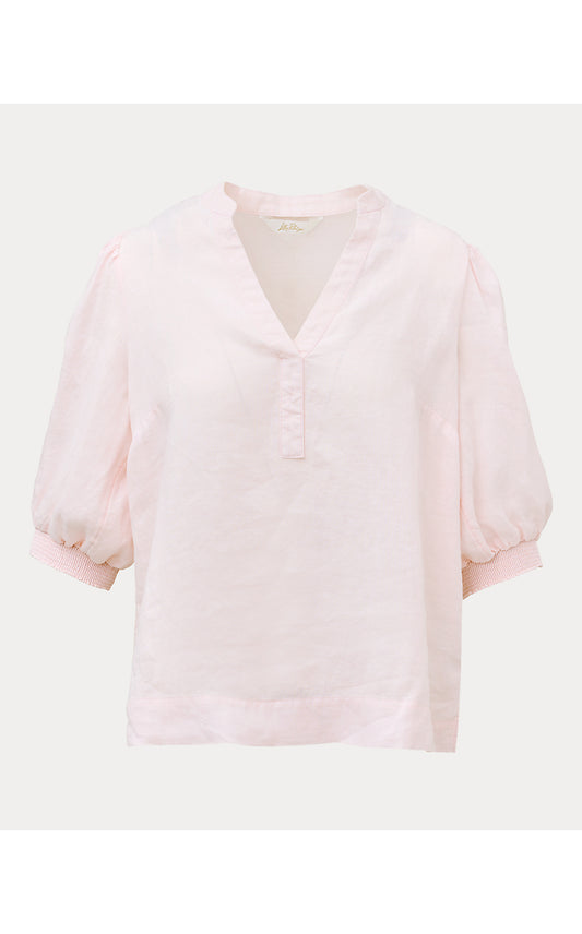 MIALEIGH ELBOW SLEEVE LINEN TOP, PINK MUSE X RESORT WHITE