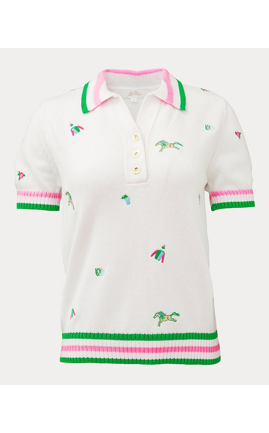 SUZETTE SWEATER, RESORT WHITE DERBY DITSY EMBROIDERY