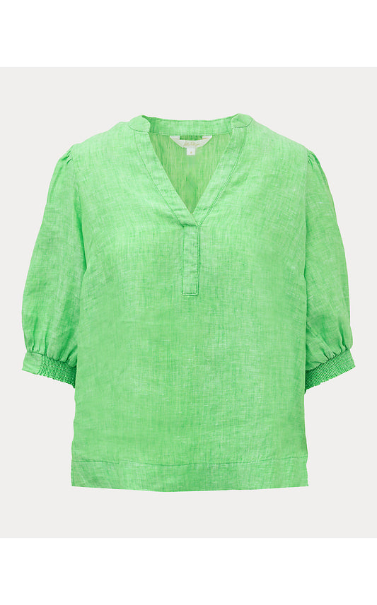 MIALEIGH ELBOW SLEEVE LINEN TOP, PUTTING GREEN X RESORT WHITE