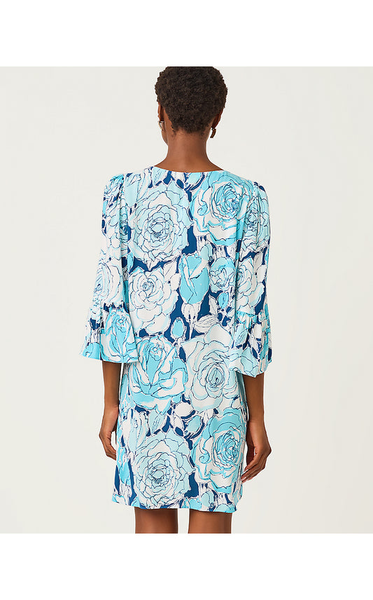 DANIKA 3/4 SLEEVE TUNIC DRESS, CAPRI BLUE ROSANNA