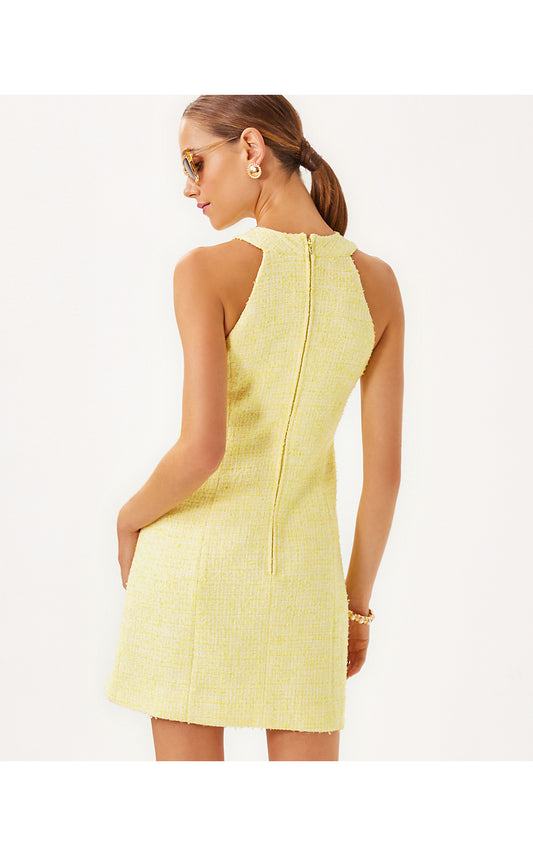 MARGARETE SKIRTED ROMPER, FINCH YELLOW CHIC CHICK BOUCLE