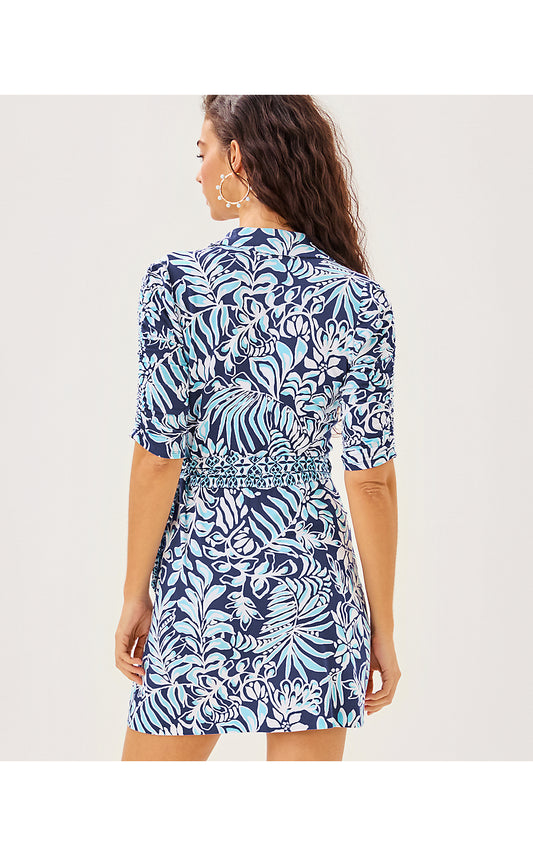 IBBY SKIRTED ROMPER, SAPPHIRE POOL SUMMER SHORELINES ENGINEERED ROMPER