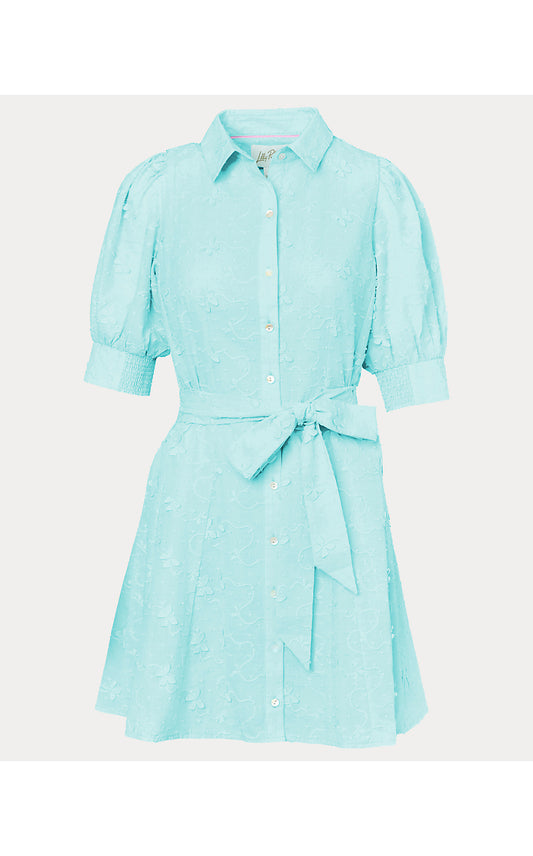 LARKYN SHIRTDRESS, DAY DREAM BLUE MONARCH EMBROIDERED COTTON SWISS DOT