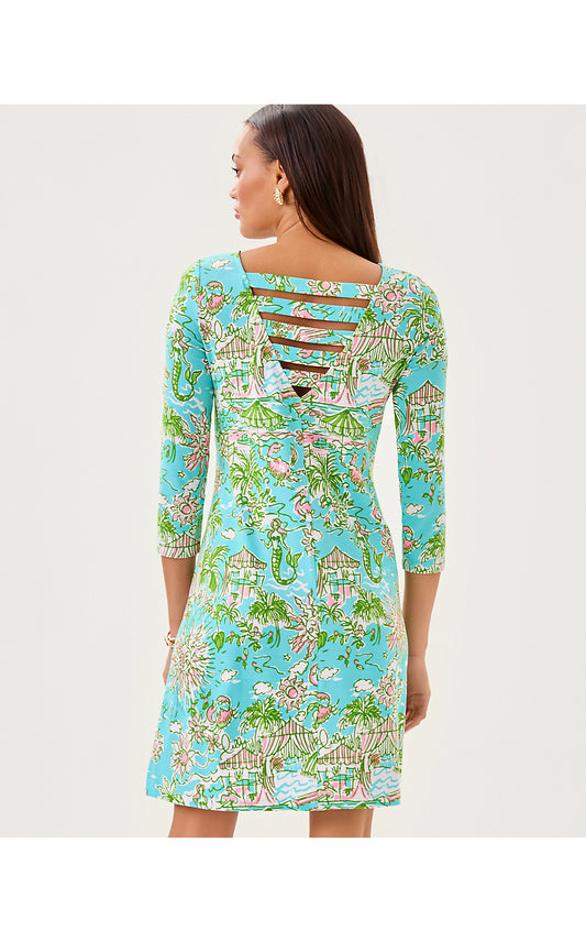 OPHELIA 3/4 SLEEVE DRESS, FRESH WATER BLUE SUNBATHERS BLISS
