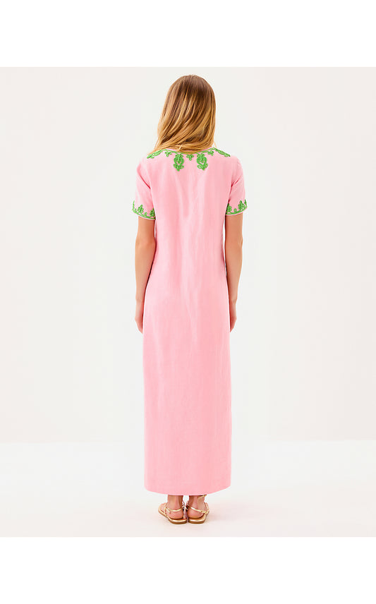 ARIELLA LINEN MAXI DRESS, CONCH SHELL PINK