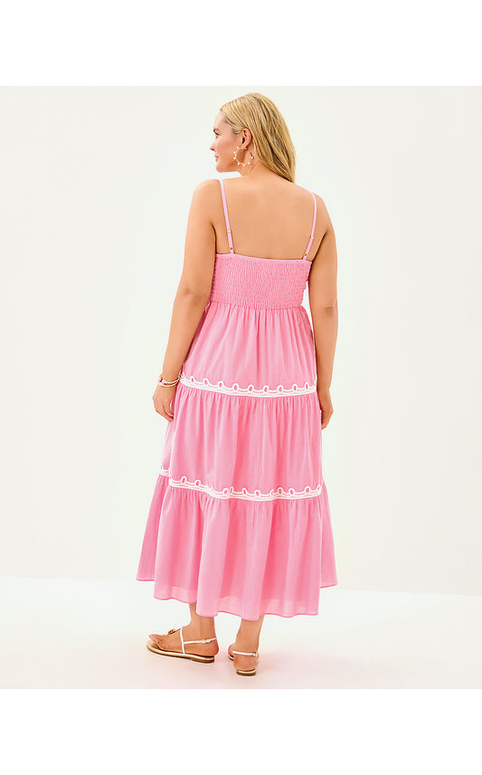 ZANNA COTTON MIDI DRESS, CONCH SHELL PINK
