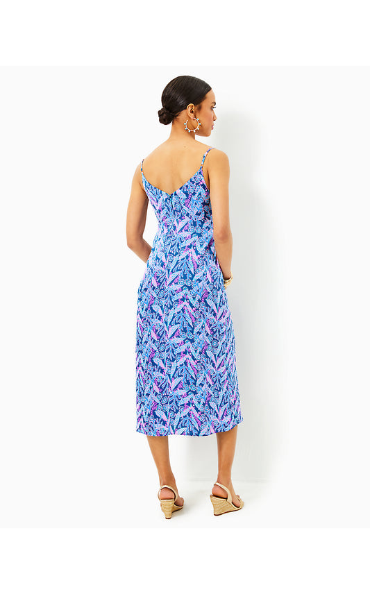 KEANA SATIN MIDI SLIP DRESS, BARTON BLUE STAR GAZING