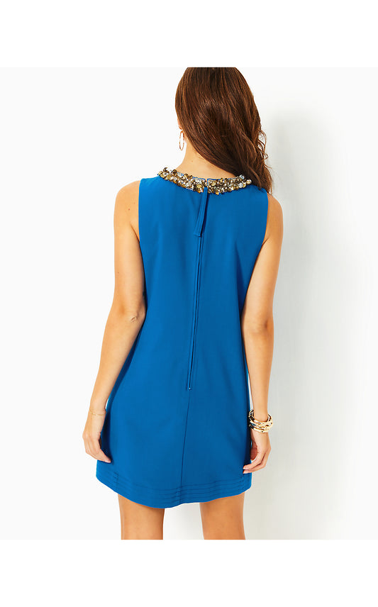 EDITA EMBELLISHED STRETCH DRESS, BARTON BLUE