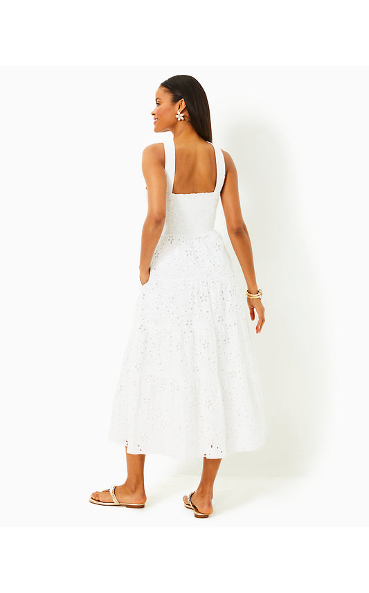 JENETTE EYELET HALTER MIDI DRESS, RESORT WHITE SEALIFE EYELET