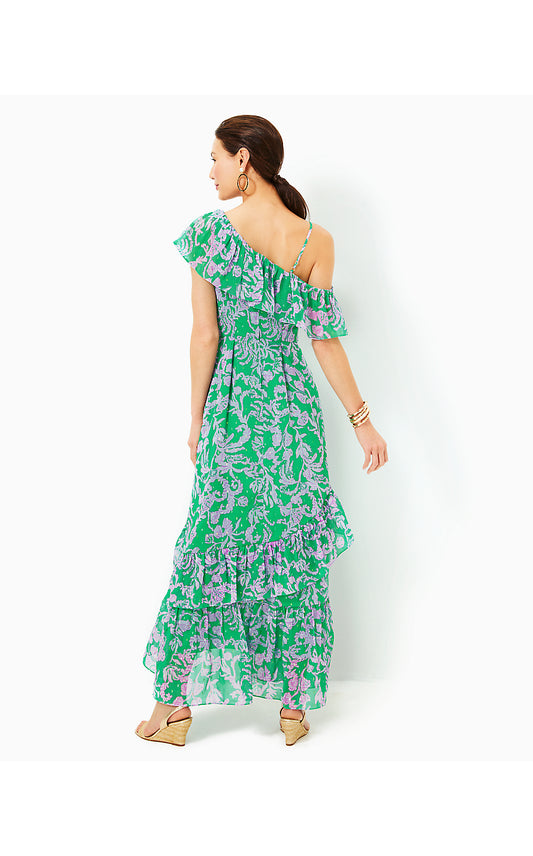 ROSALYNN RUFFLE MAXI DRESS, BRAZILIAN GREEN SALTY SANDBAR