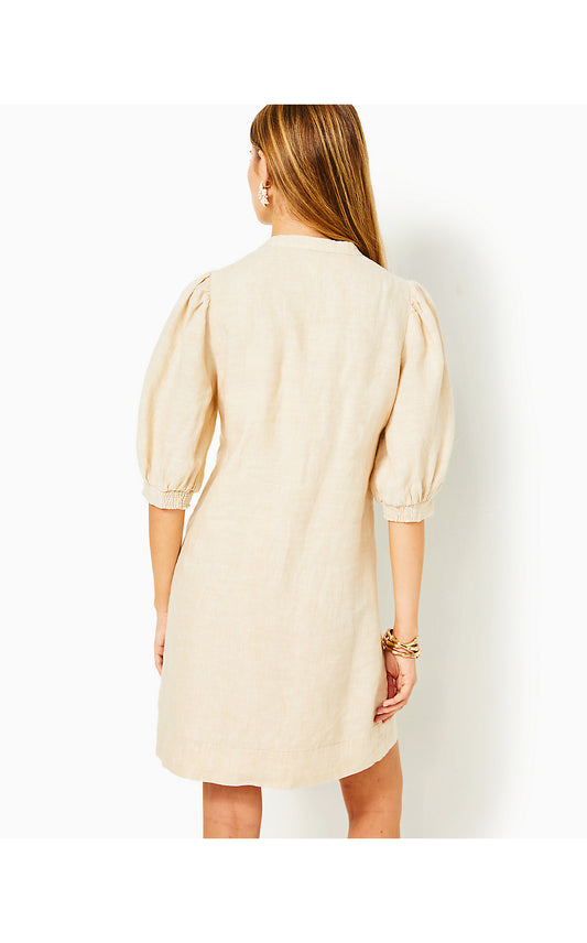 MIALEIGH ELBOW SLEEVE LINEN DRESS, SAND BAR X RESORT WHITE