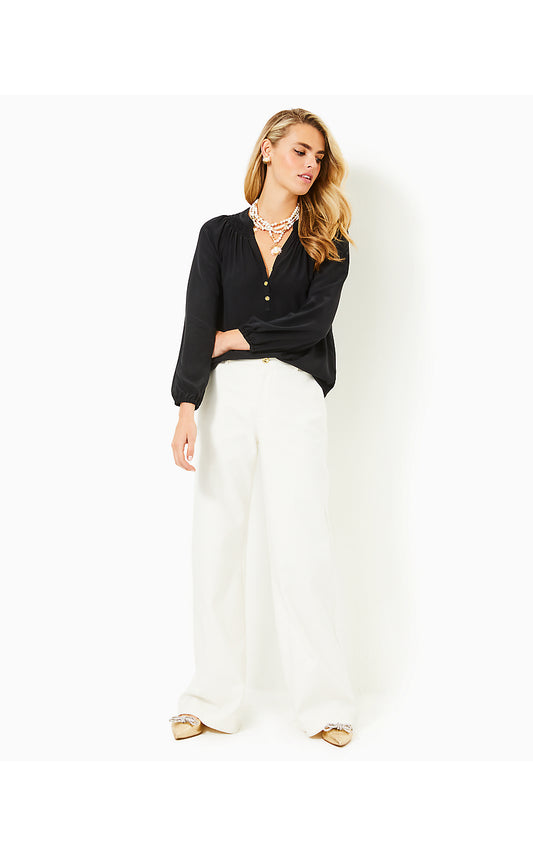 MIALEIGH ELBOW SLEEVE LINEN TOP, RESORT WHITE