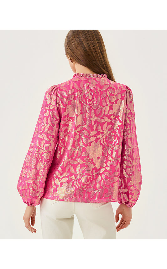 GIANA LONG SLEEVE SILK TOP, SUN SHELL PINK FLORAL BLOOM SILK CLIP