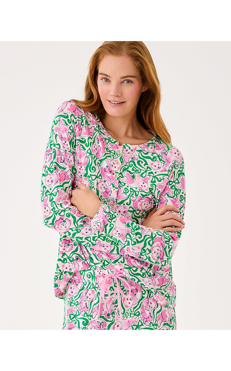 - Easy fit pajama top with a front henley neckline, buttons, and long sleeves.