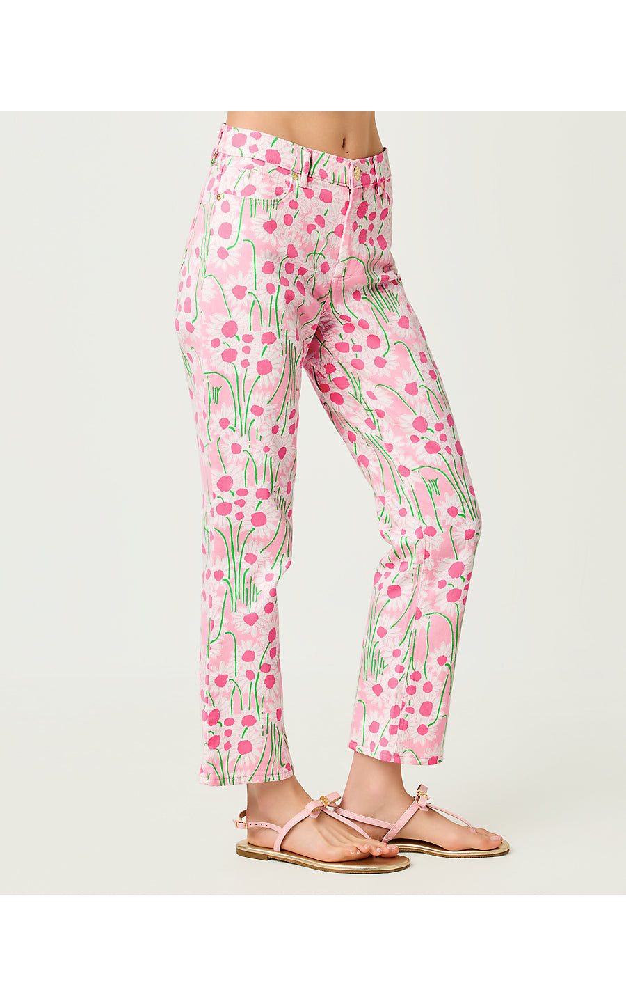ANNET HIGH RISE CROP FLARE JEAN, CONCH SHELL PINK SUNNY DAISIES