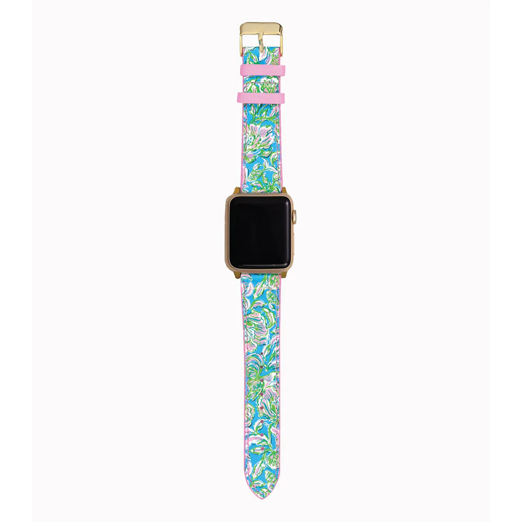 Add a pop of Lilly print to your Apple Watch with this genuine leather band, accented by gold hardware. This stylish band connects to Apple Watch series 1, 2, 3, 4, SE, and 6.