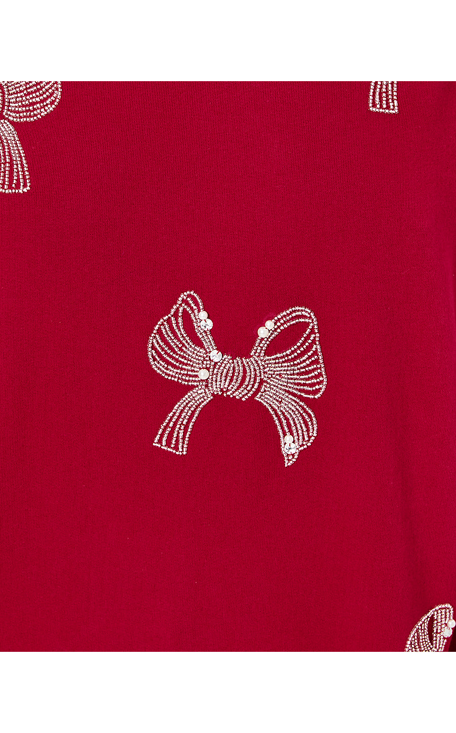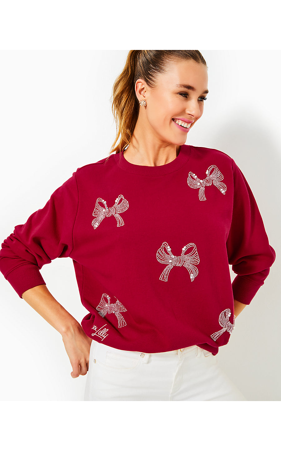 BALLAD LONG SLEEVE SWEATSHIRT, MALBEC RED BOW EMBELLISHMENT