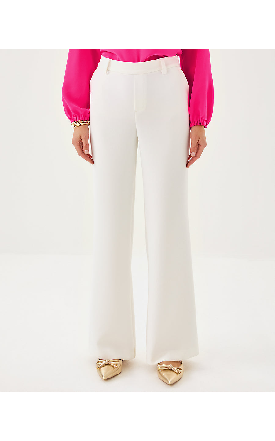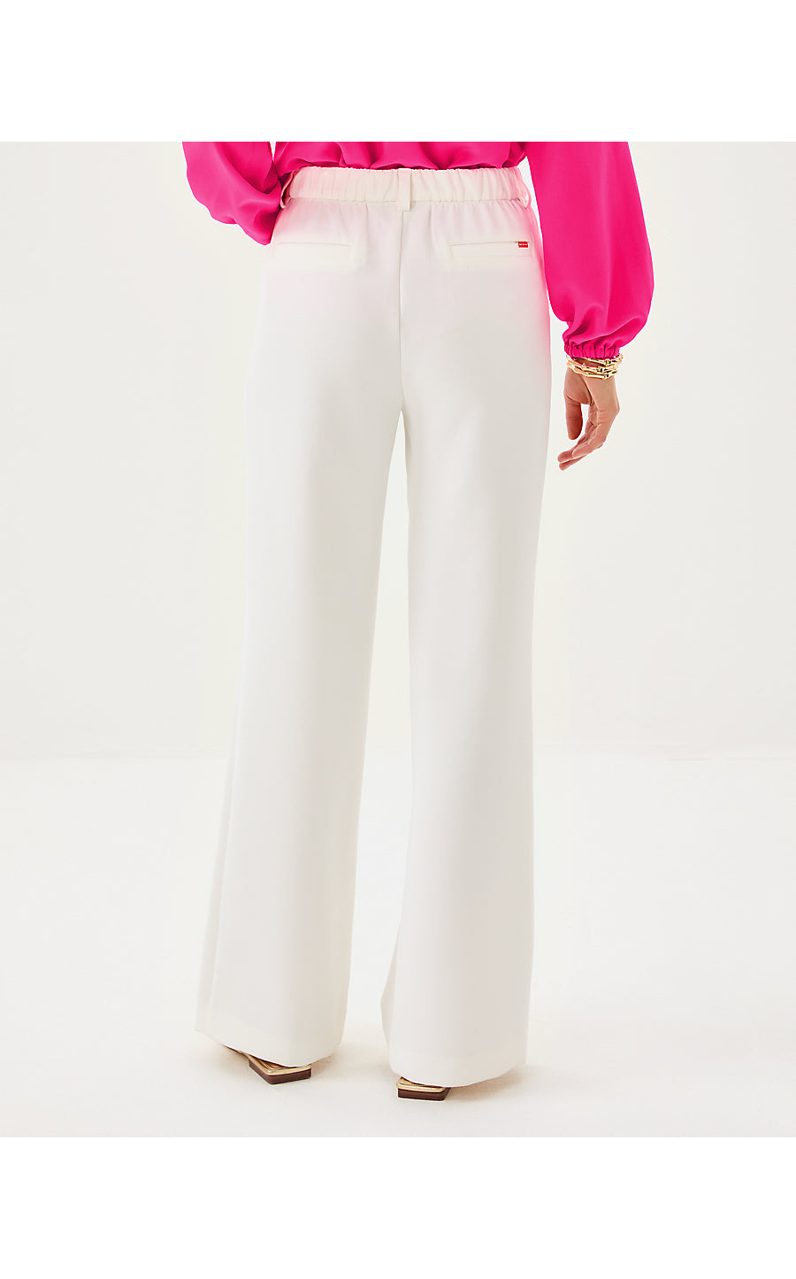 - High rise, pull-on, crepe palazzo pant with a wide fit. Wrinkle resistant.