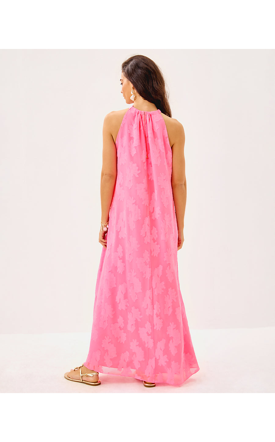 CLAIRABEL MAXI DRESS, ROUSSEAU PINK CORAL SWIRL POLY CREPE