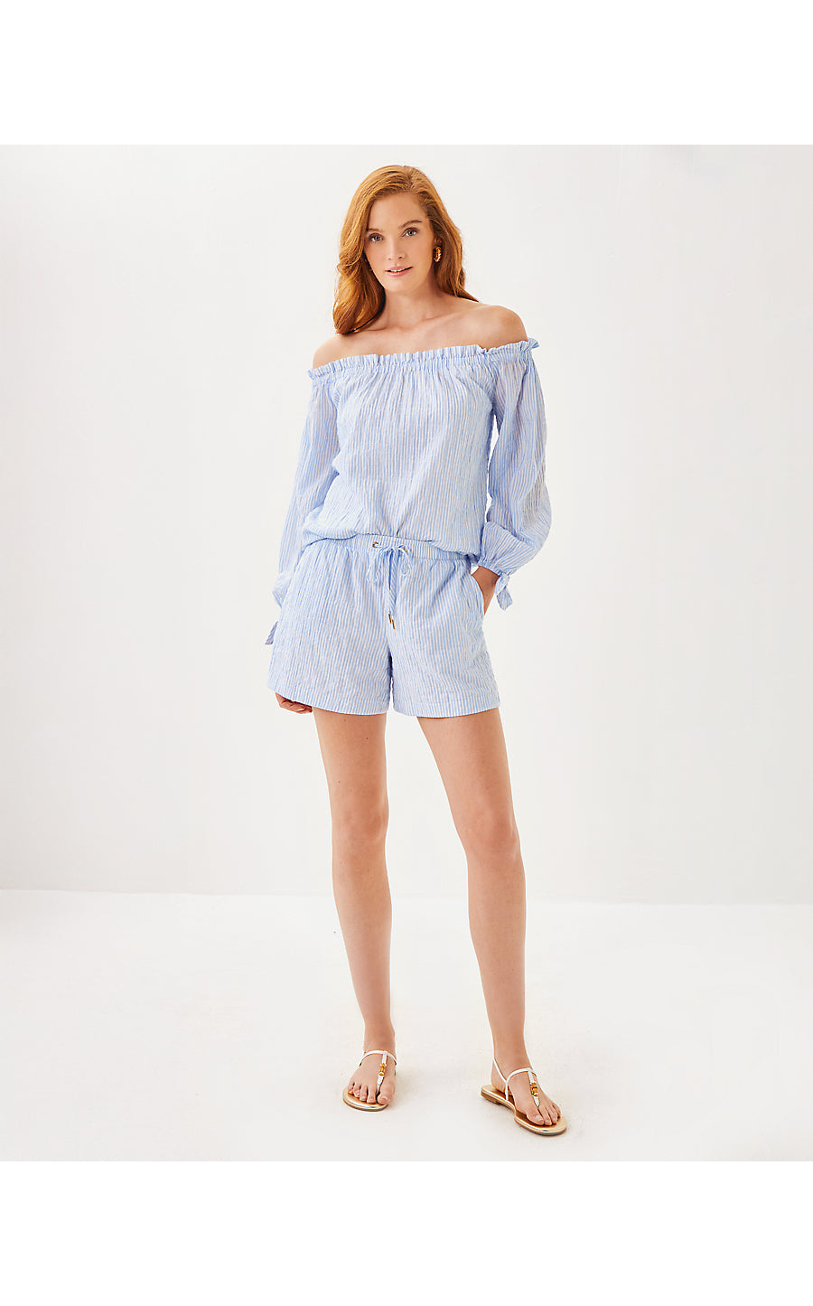 CROIX SHORT, JACARANDA BLUE LTWT OXFORD STRIPE