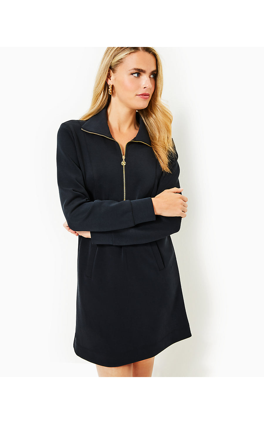 - Easy fit, half-zip, pullover dress with long sleeves.