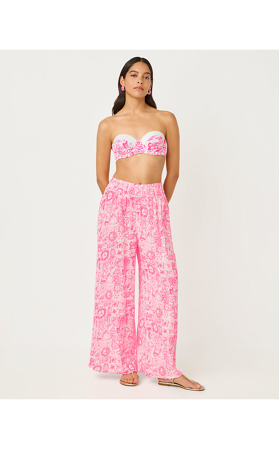 Upgrade your beachwear look in the Enzo Cotton Cover-Up Pant. These high-rise, pull-on pants feature a comfortable smocked waist, making them the perfect choice for both style and ease during your sunny escapes.