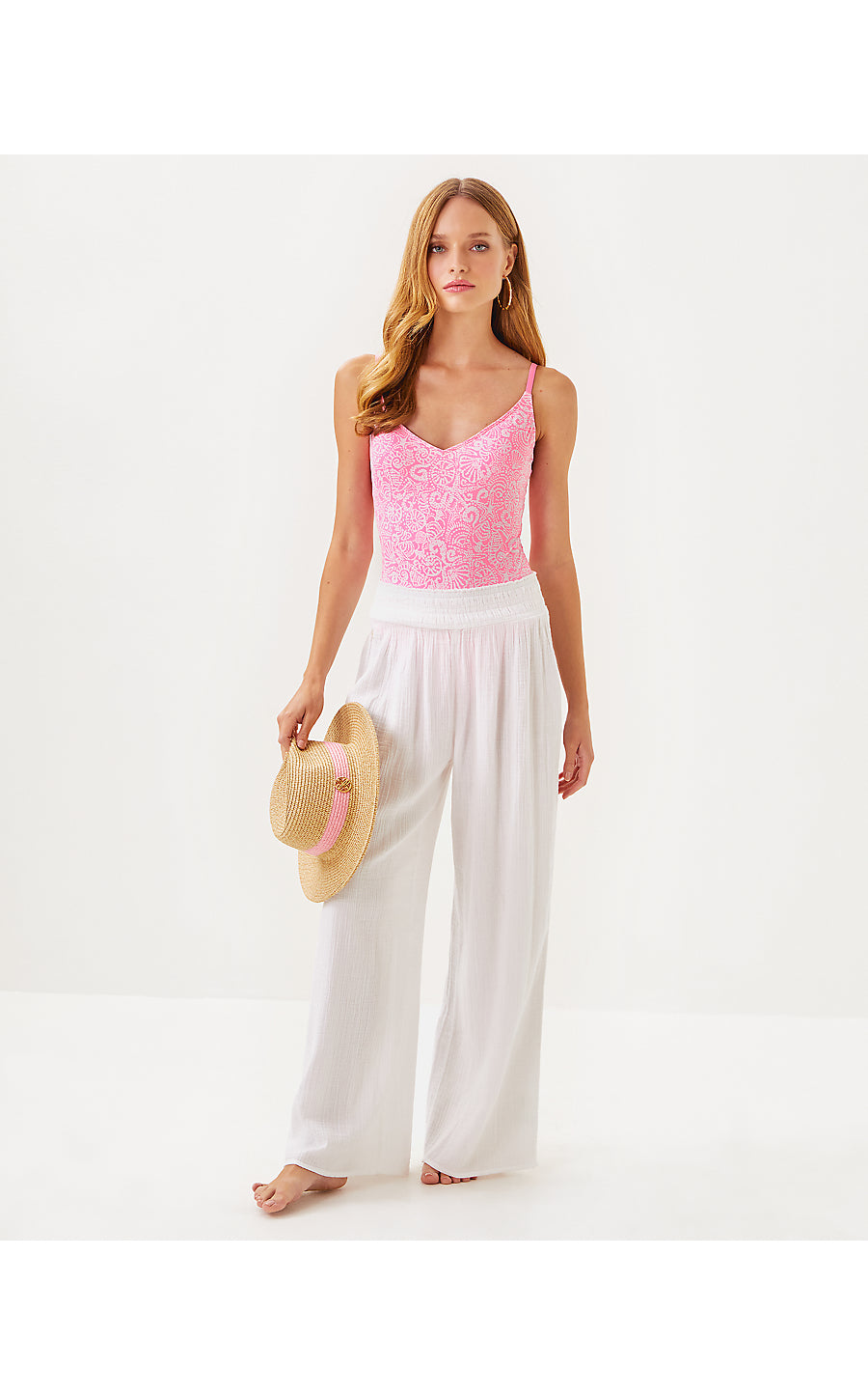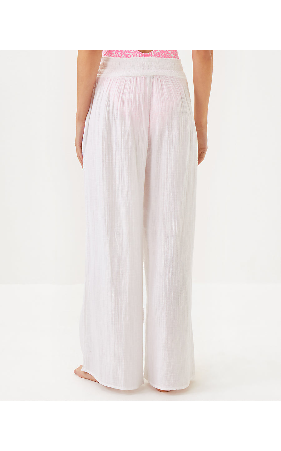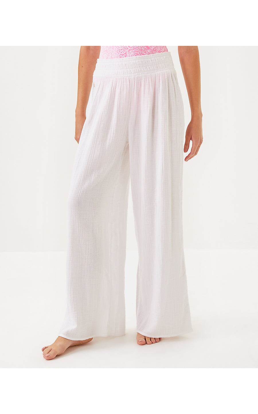 Upgrade your beachwear look in the Enzo Cotton Cover-Up Pant. These high-rise, pull-on pants feature a comfortable smocked waist, making them the perfect choice for both style and ease during your sunny escapes.