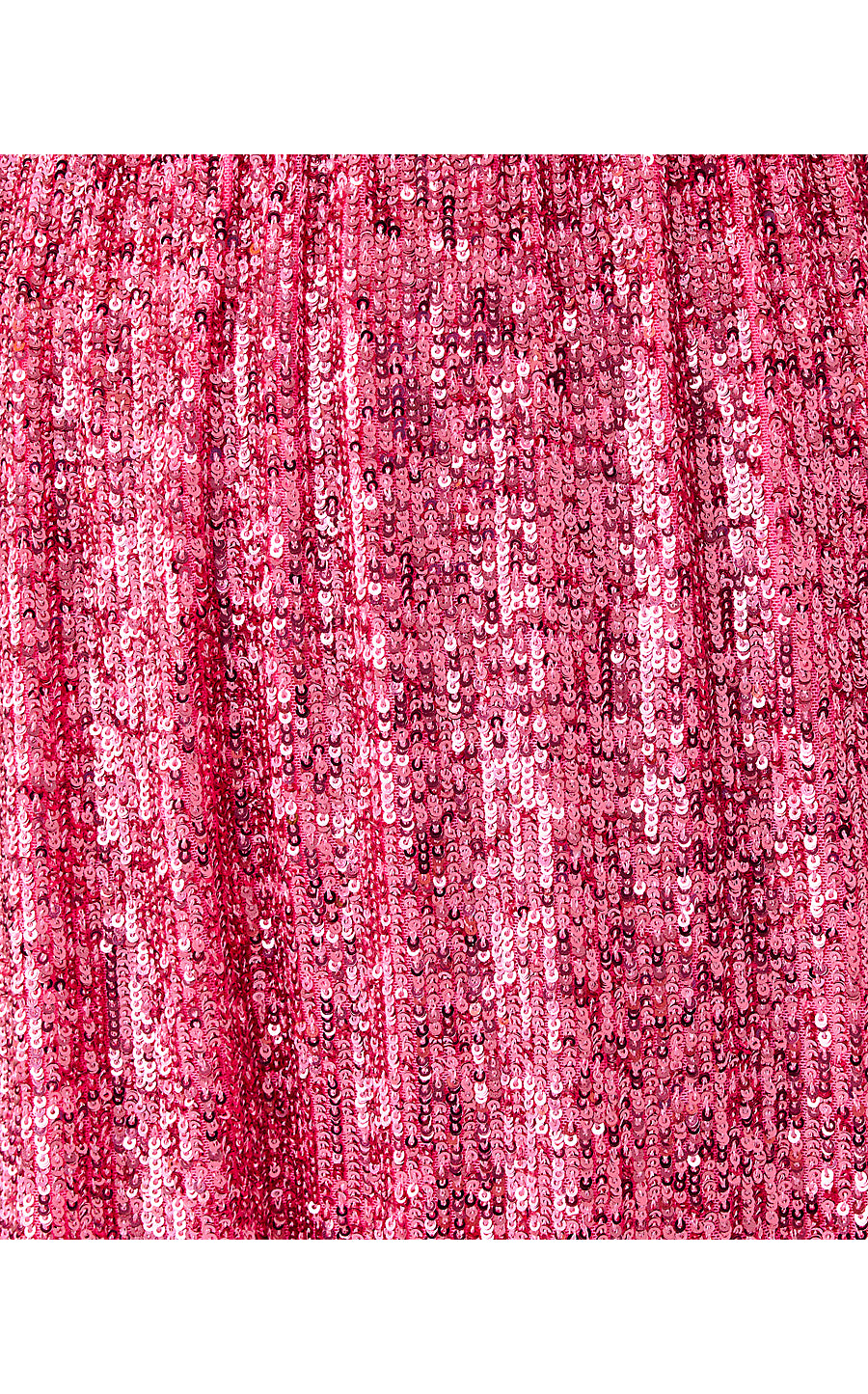 JAN SKIRTED ROMPER, SUN SHELL PINK TREASURE BOX SEQUIN KNIT