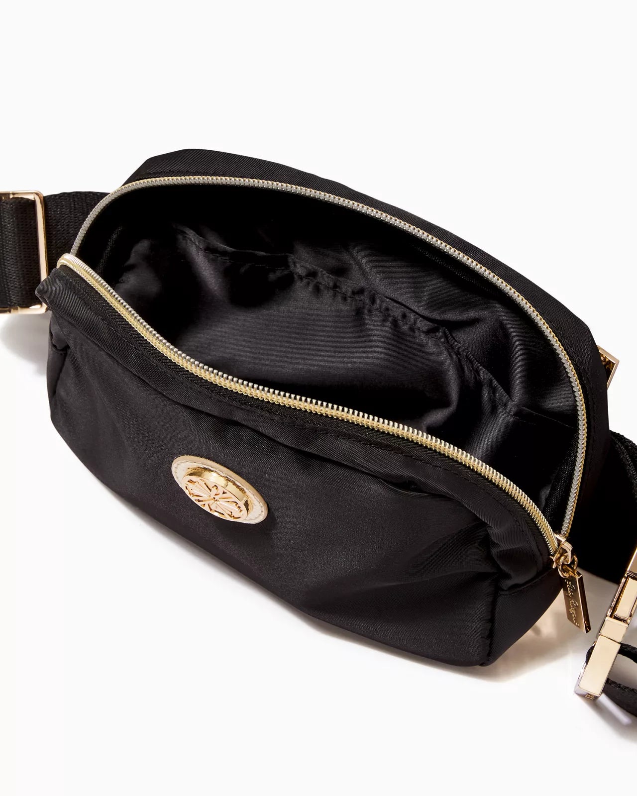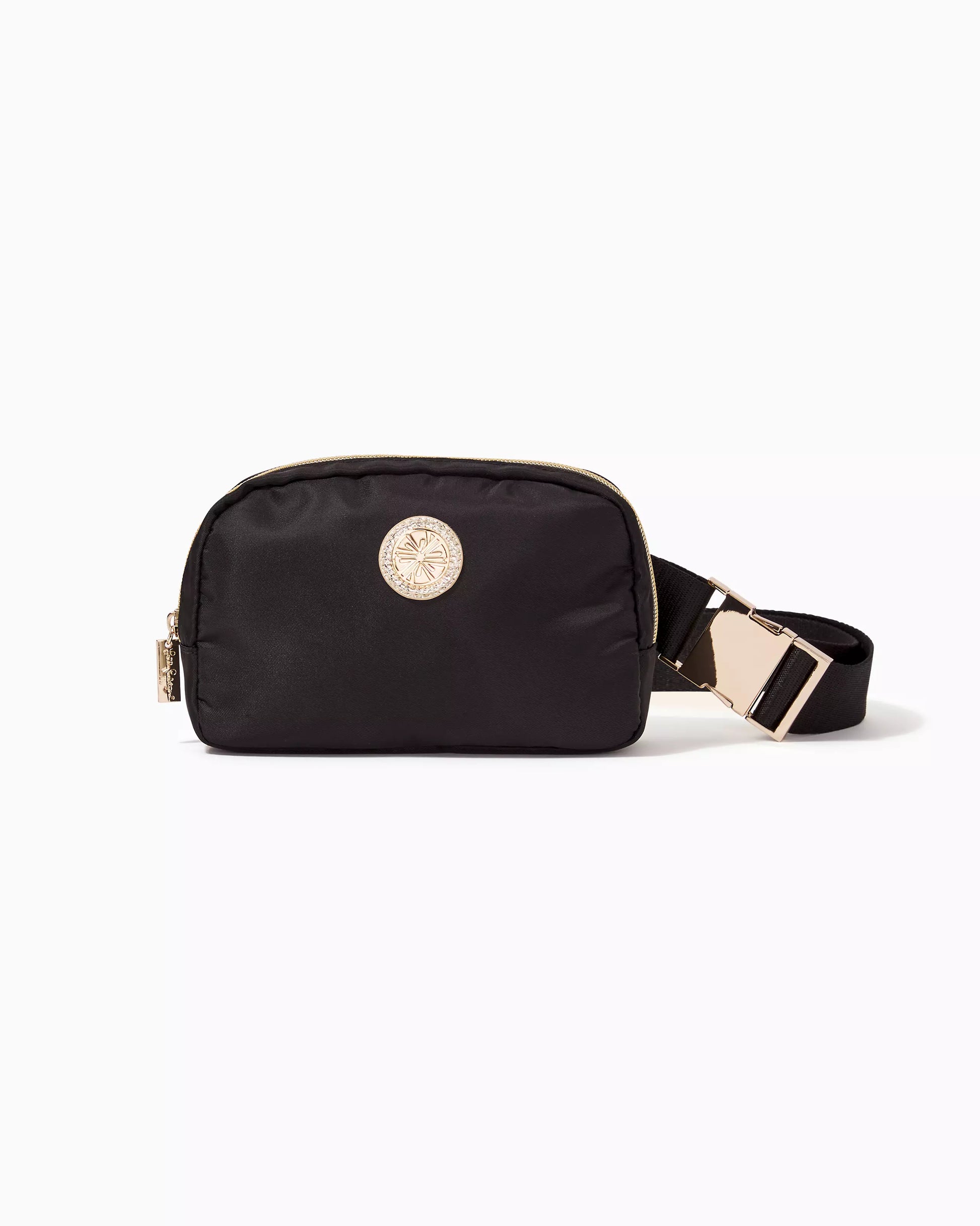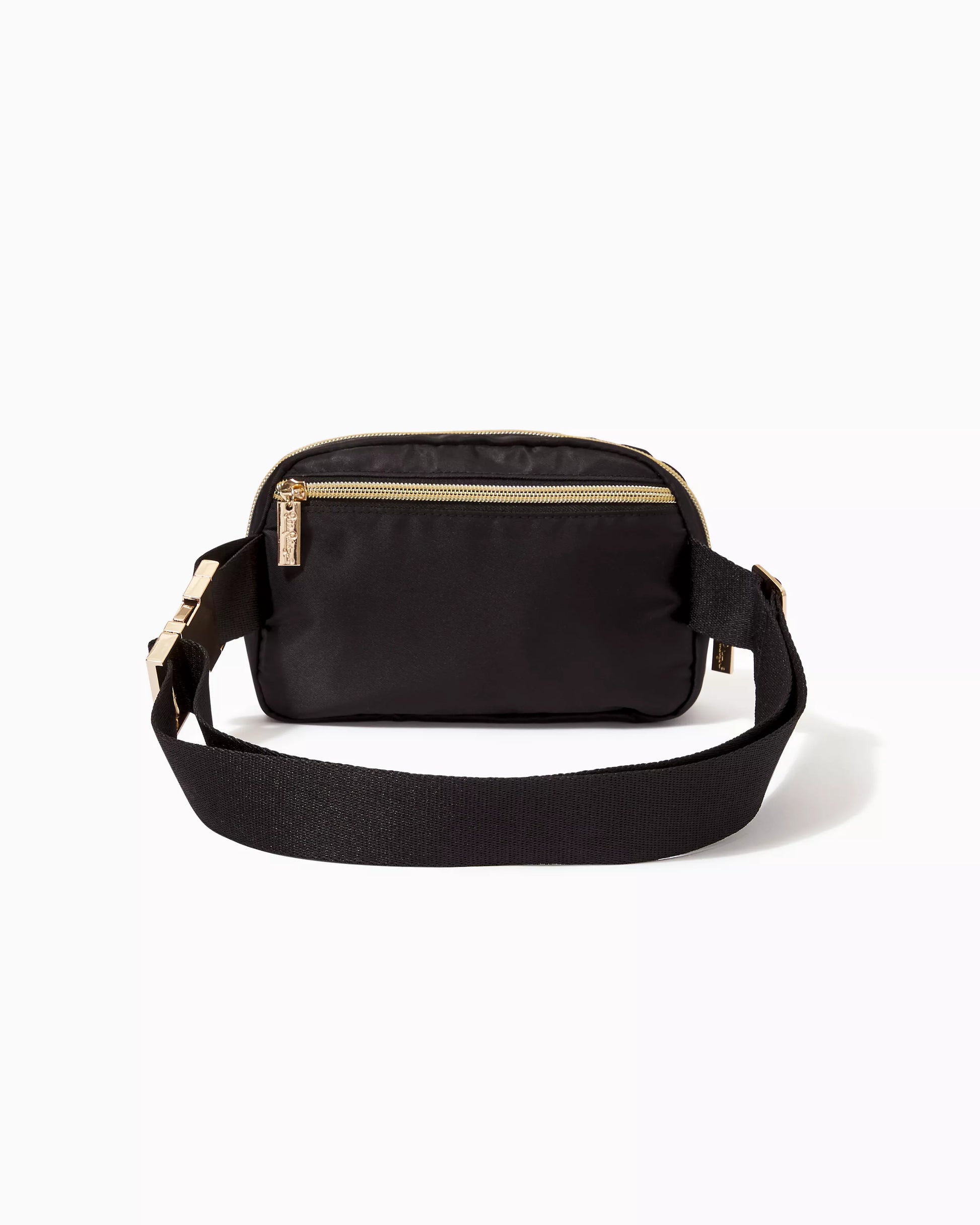 A stylish way to keep your on-the-go essentials handy, this belt bag features the Lilly citrus logo, a zip closure, and a striped webbing strap with an adjustable buckle.