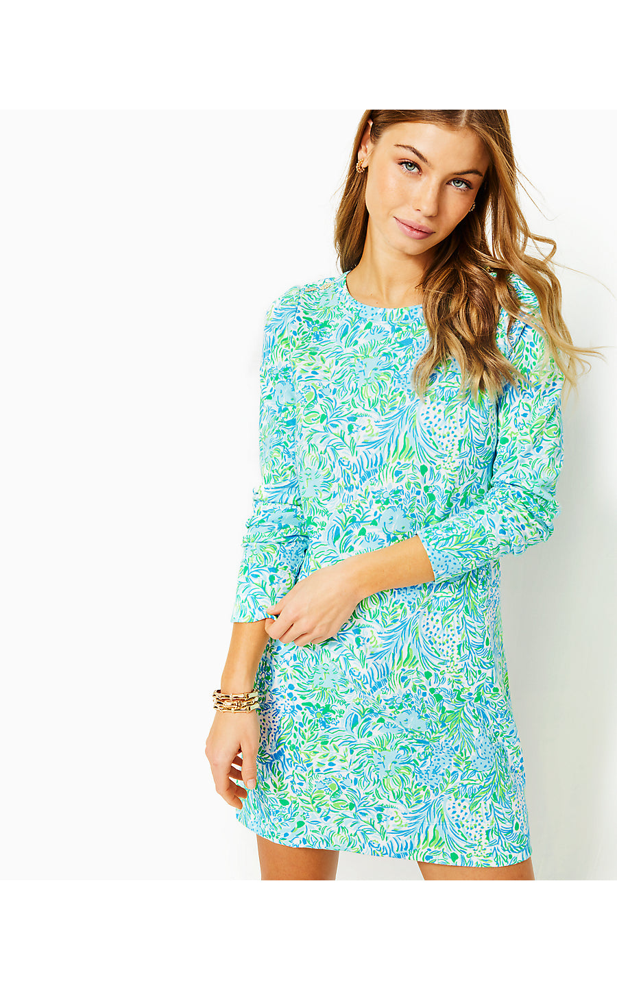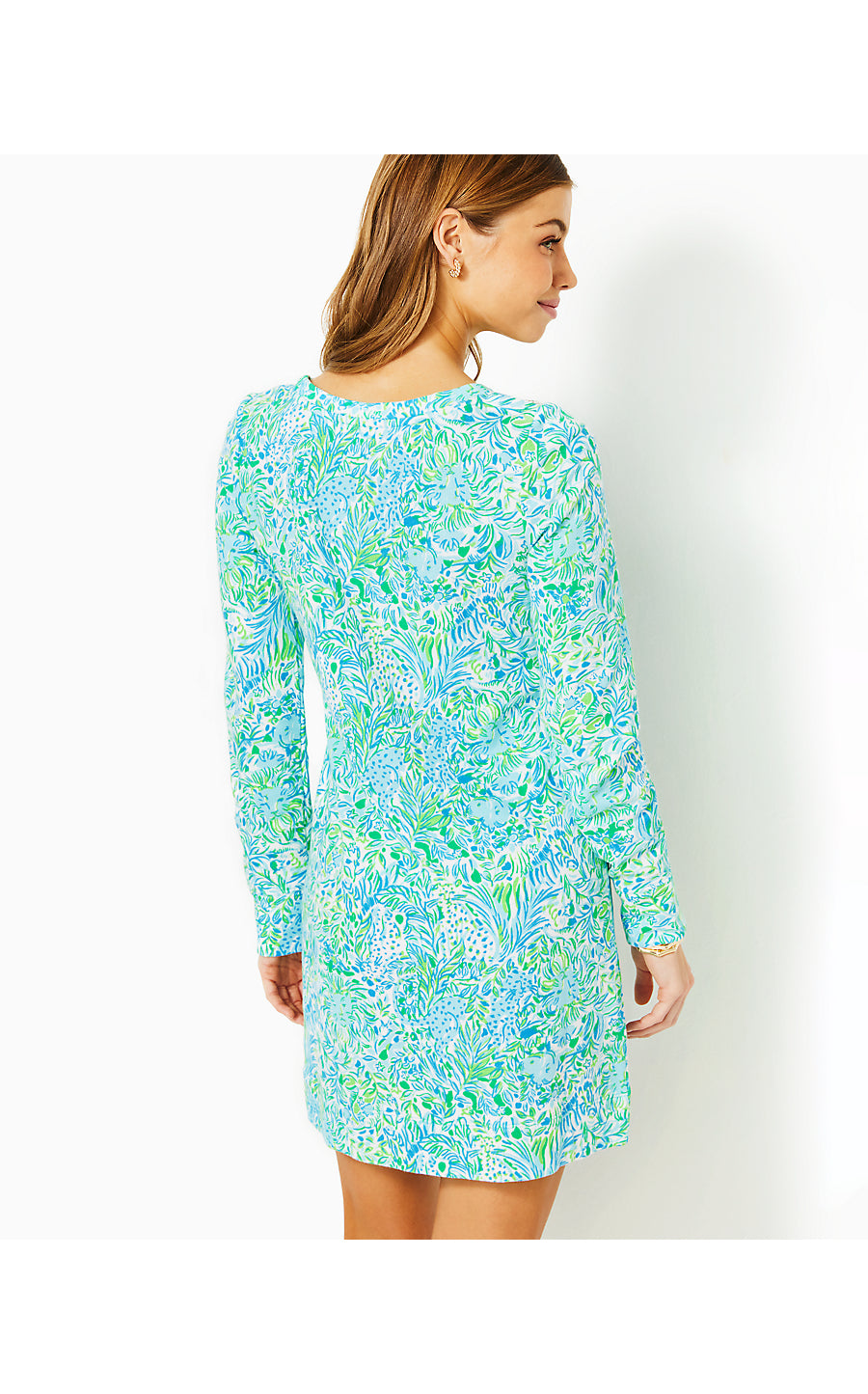 KENLEY LONG SLEEVE CREWNECK DRESS, HYDRA BLUE DANDY LIONS