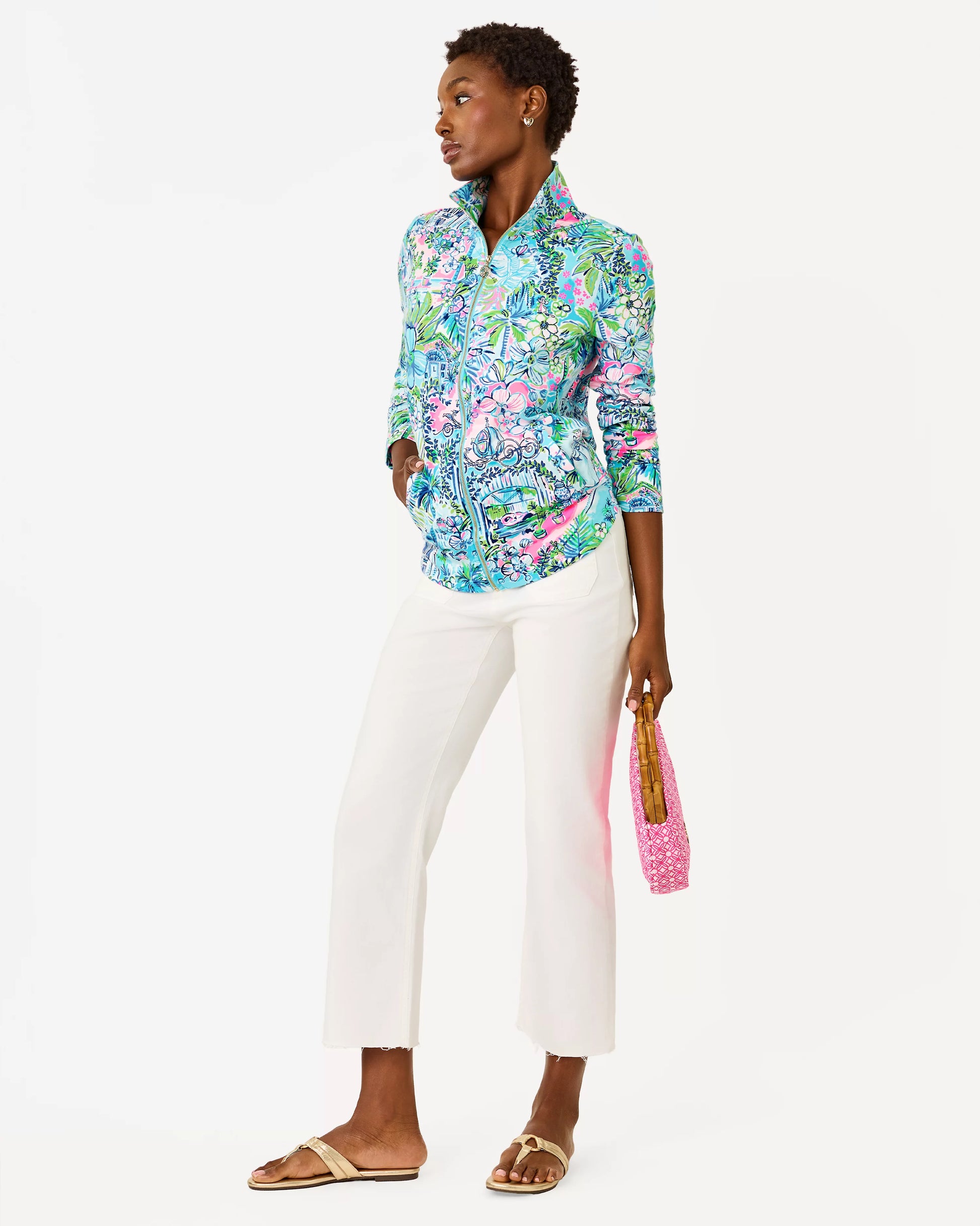 Made from Luxe Terry fabric, our Leona Zip-Up Jacket offers UPF 50+ sun protection and exceptional softness. Brightly styled in an eye-catching Lilly print, it's the perfect balance of sporty and feminine.