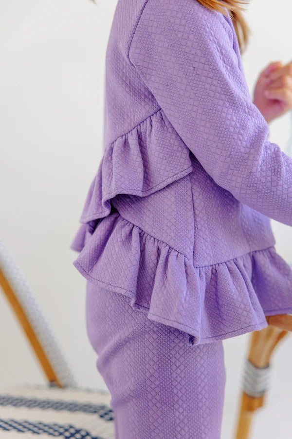 Your sweet girl will be ready for a day of play in our Long Sleeve Love You Back Top! Featuring Quilted Palisades Purple and the sweetest ruffle details, this top is sure to become her new favorite!