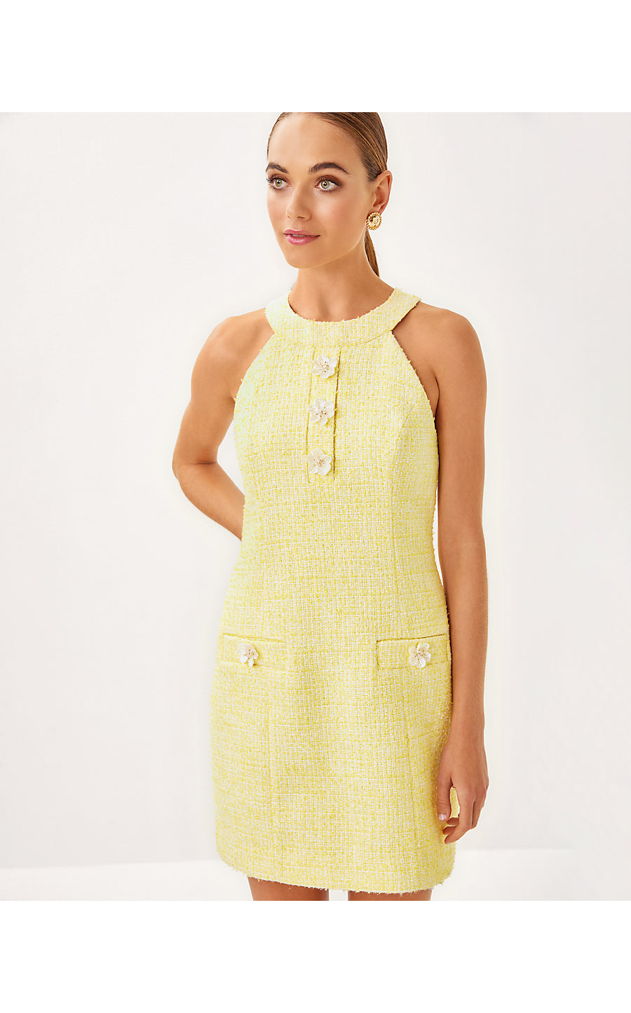 Celebrate in vibrant Lilly style with our tailored Margarete Boucle Skirted Romper.
