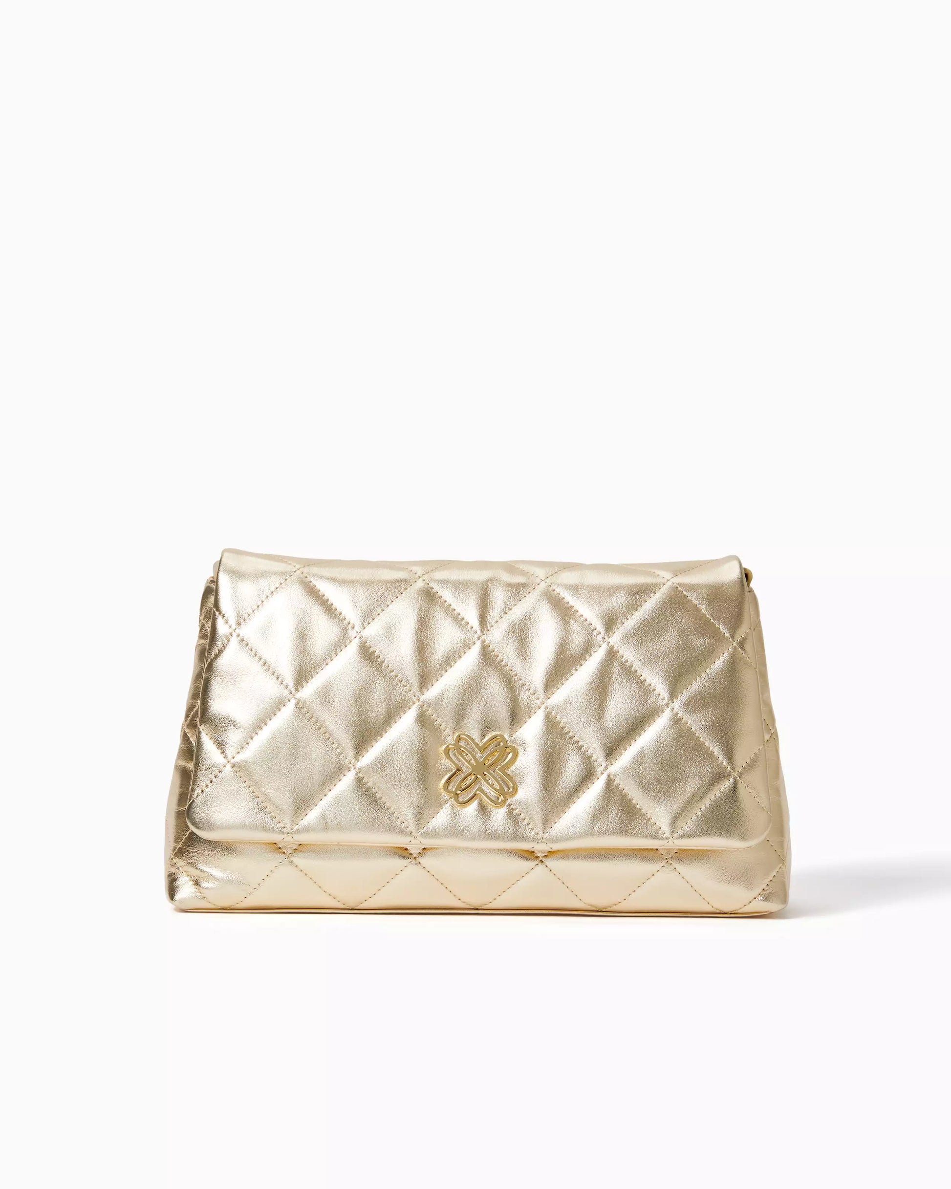 Add a golden touch to any outfit with our sophisticated Matea Quilted Leather Clutch.