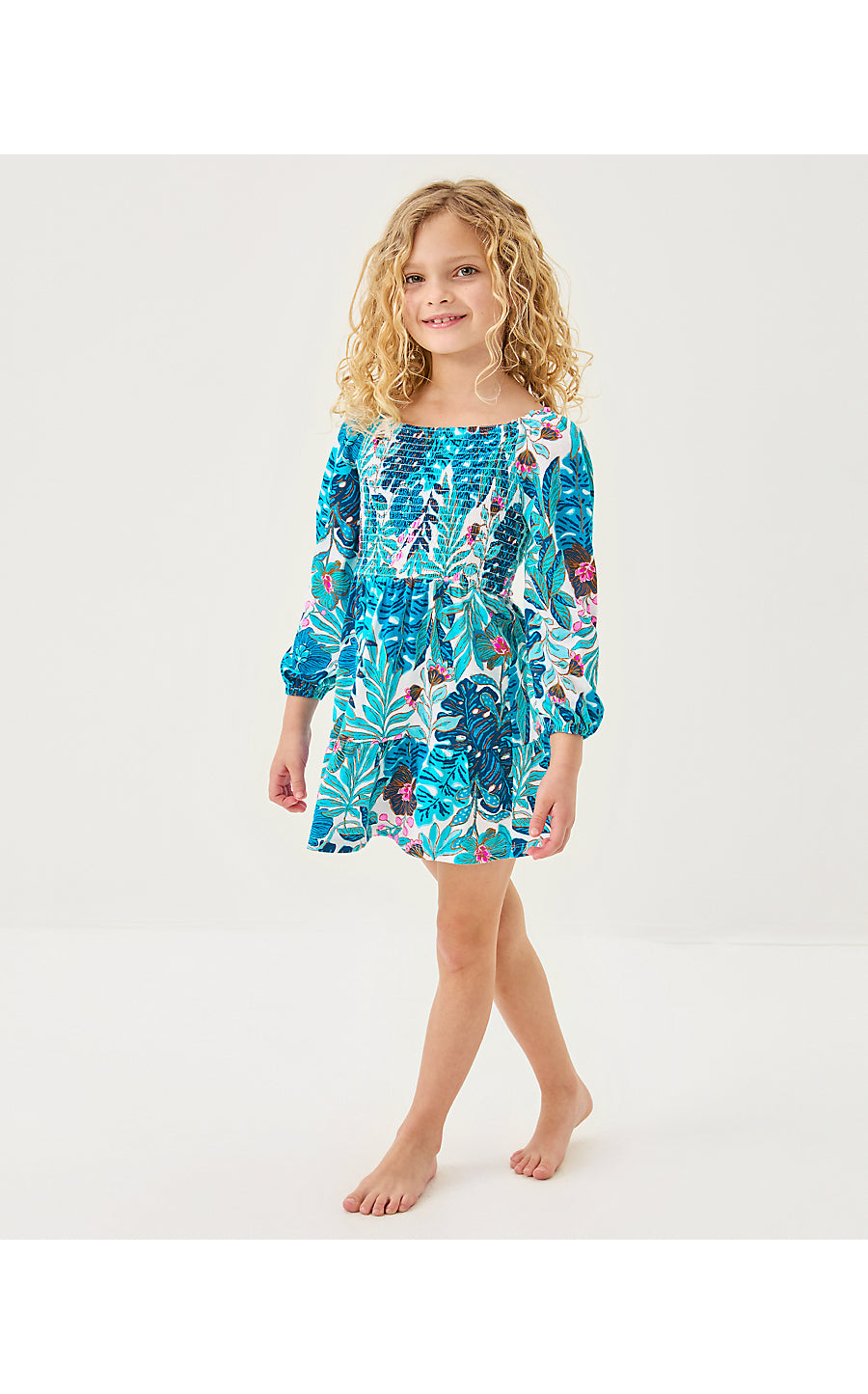 MINI JILLY LONG SLEEVED DRESS, BREEZY AQUA BEST FRONDS FOREVER