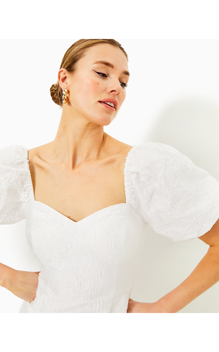 MORENA SHORT-SLEEVE ROMPER, COCONUT LEAF AN IMPRESSION JACQUARD