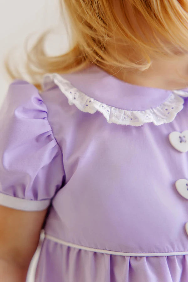 The Olivia Ruth Romper in Lauderdale Lavender with Worth Avenue White is pure sweetness in one-piece form. With its soft lavender hue and charming details, this girls' romper takes the guesswork out of getting dressed. Easy to wear, easy to love, and built to handle everything from birthday parties to playground adventures—it's the kind of outfit that makes mornings easier and memories sweeter.