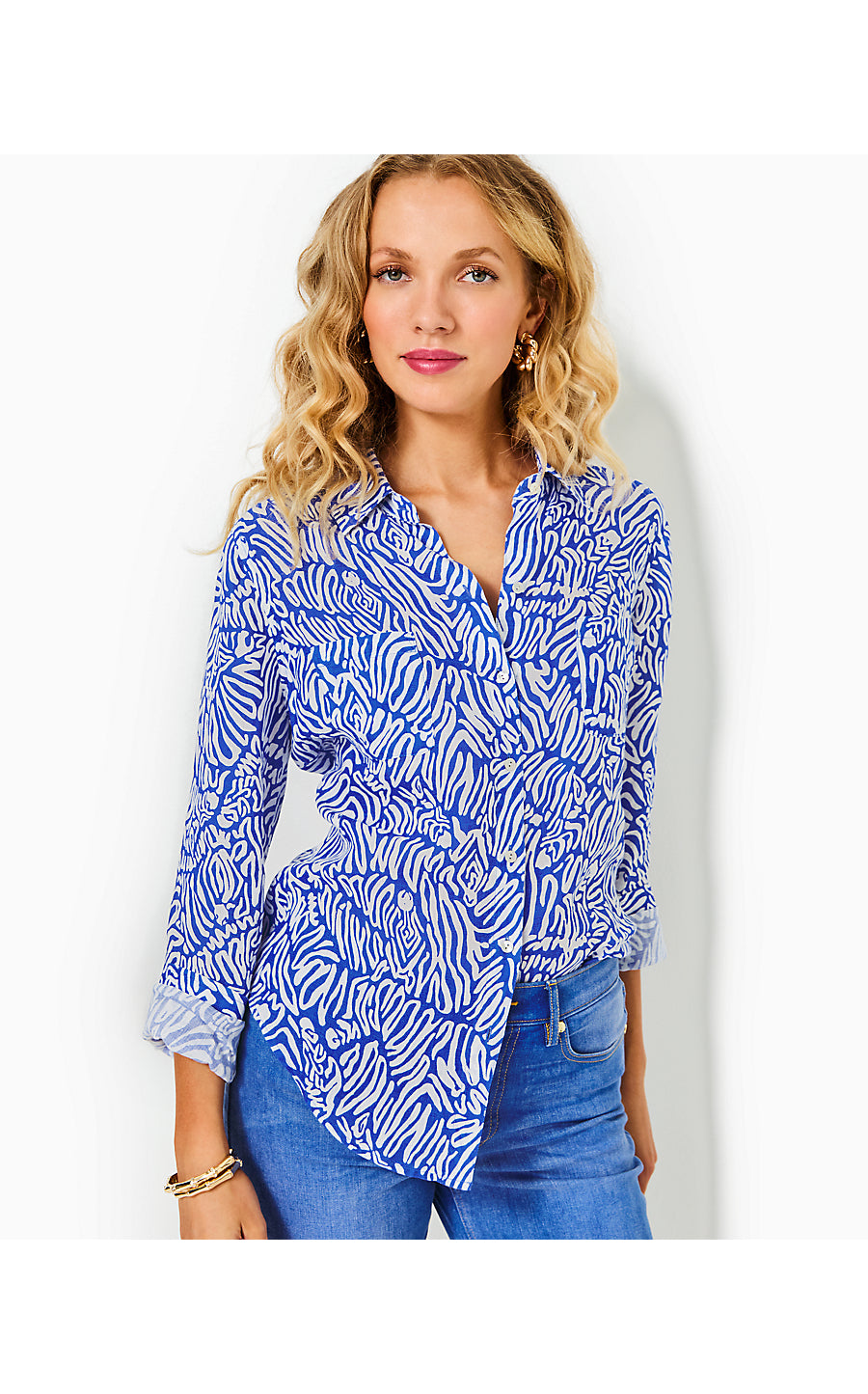 SEA VIEW BUTTON DOWN, MARTINIQUE BLUE ZEE BEBE