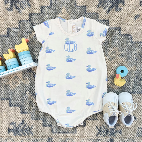 Watch your little one waddle around in adorable style with our Short Sleeve Patton Play Bubble in Merrimack Quack Quacks. The convenient snap closure makes diaper changes a breeze while the classic bubble silhouette keeps him comfortable for all-day play and adventures. From sunny park days to casual family gatherings, this charming one-piece is guaranteed to bring smiles wherever he goes.
