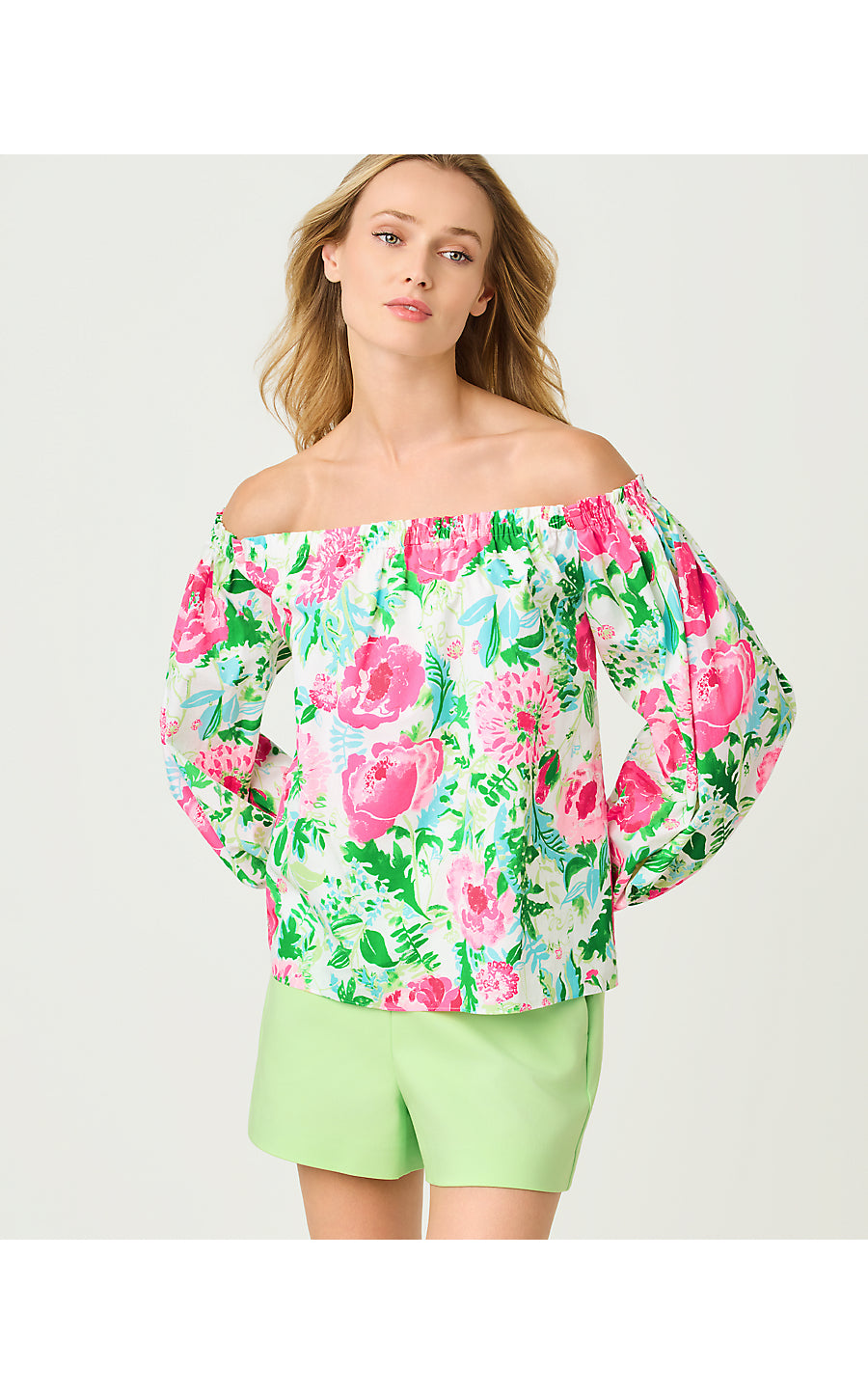 SILOE OFF THE SHOULDER TOP, MULTI POPPY PARTY