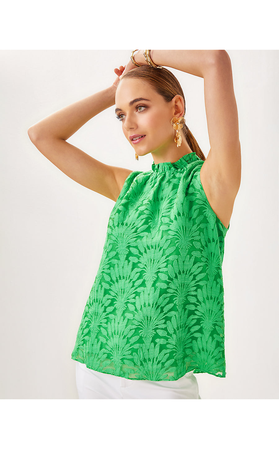 TOLYA TOP, FAUNA GREEN STACKED PALM BURNOUT